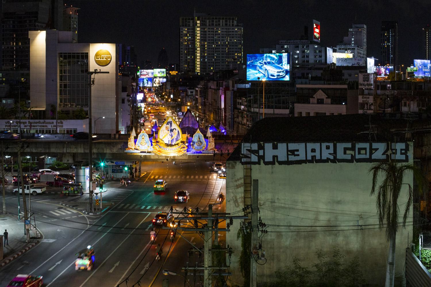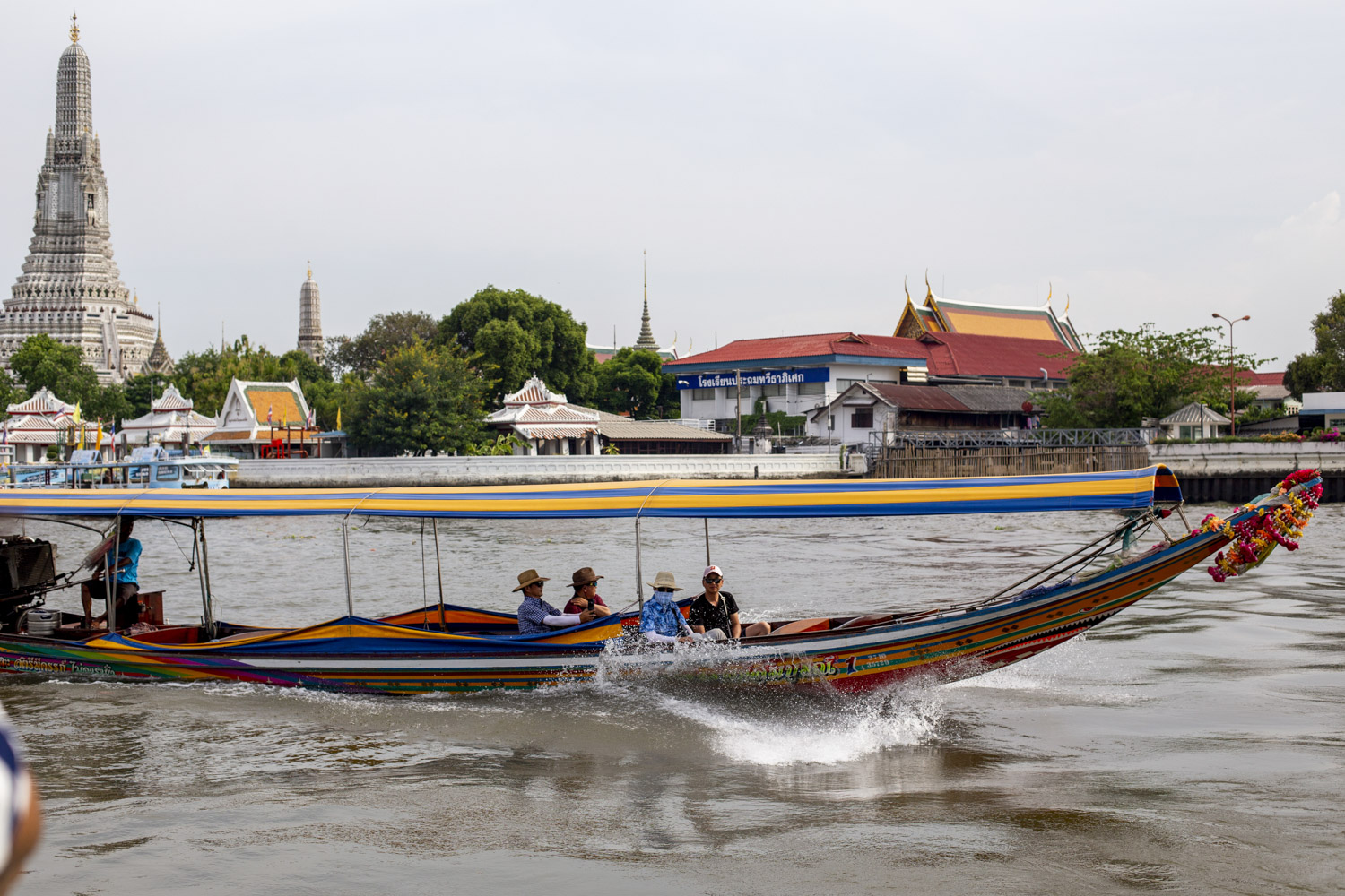 Capital de Tailandia. El río Chao Phraya, lleno de botes, alimenta su red de canales y pasa por el distrito real de Rattanakosin, donde se encuentra el Gran Palacio y su templo sagrado Wat Phra Kaew. Cerca de allí, se ubica el templo Wat Pho, con un enorme Buda inclinado y, en la orilla opuesta, el templo Wat Arun, con sus empinados escalones y su chapitel de estilo Khmer. Un par de días, lo que permitió el trabajo, recorrimos algunas calles de Bangkok.